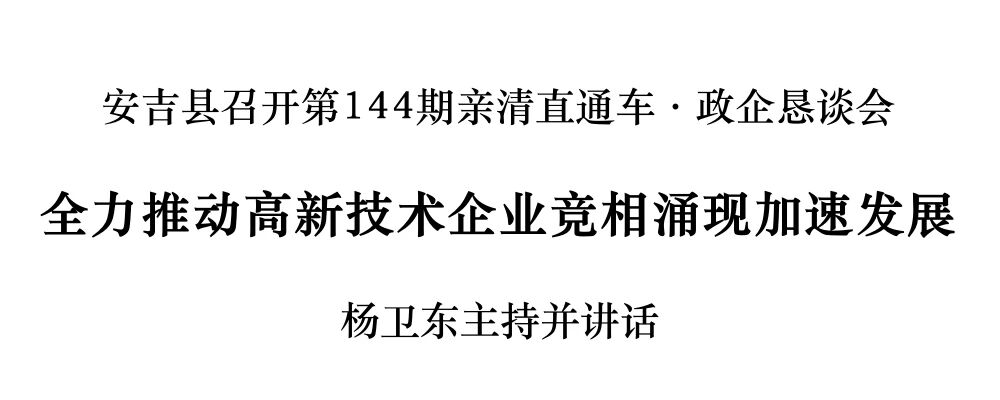 市委常委、縣委書記楊衛(wèi)東主持召開安吉縣第144期“在湖州看見美麗中國”親清直通車·政企懇談會(huì),與企業(yè)家面對面交流,了解企業(yè)發(fā)展情況,勉勵(lì)企業(yè)深耕專業(yè)領(lǐng)域,發(fā)揮創(chuàng)新優(yōu)勢,以科技創(chuàng)新引領(lǐng)產(chǎn)業(yè)創(chuàng)新,為安吉經(jīng)濟(jì)高質(zhì)量發(fā)展作出更大貢獻(xiàn)。副縣長管永豐出席。