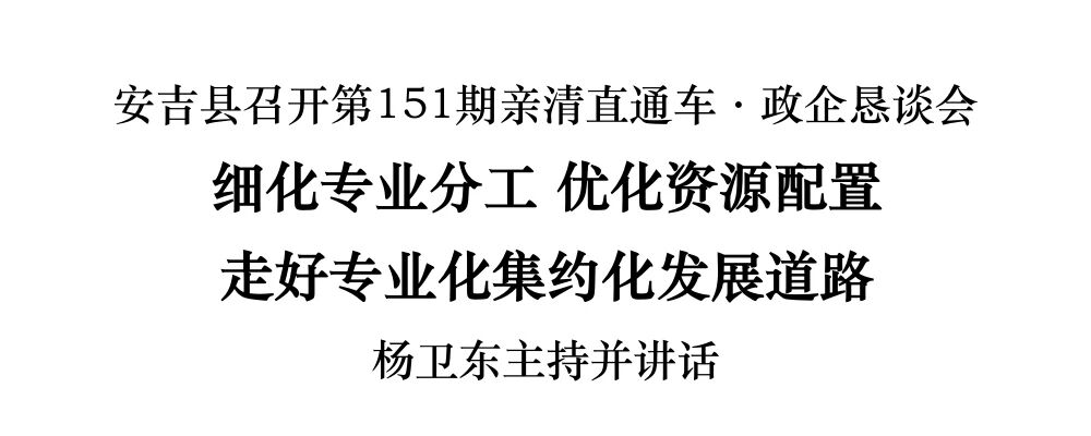 ? ? ? 10月29日下午,市委常委、縣委書記楊衛(wèi)東主持召開安吉縣第151期“在湖州看見美麗中國”親清直通車·政企懇談會,與企業(yè)家代表座談交流,深入了解企業(yè)生產(chǎn)經(jīng)營情況,聽取訴求建議、回應(yīng)關(guān)心關(guān)切。副縣長管永豐出席。