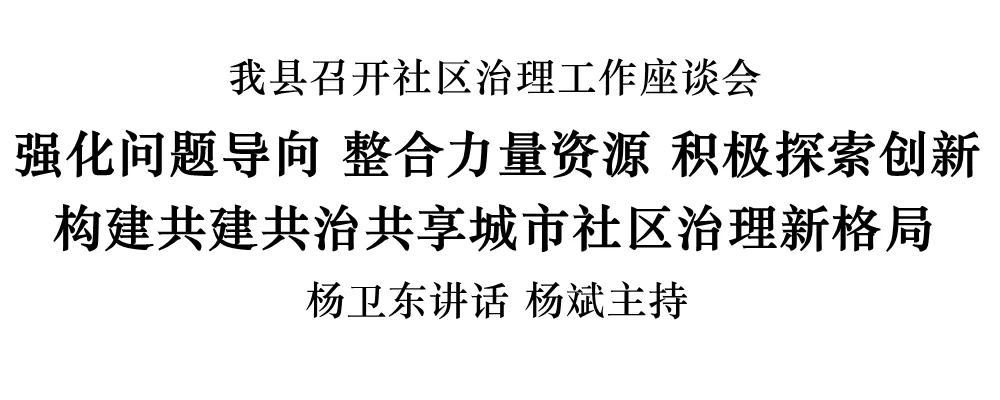 楊衛東指出,要探索社區治理的統一協調機制,明確鄉鎮(街道)和相關部門權責范圍,厘清職責邊界,建立工作機制,統籌力量資源,加強溝通聯動,推動資源、服務、力量下沉,確保社區問題“接得快、派得準、辦得好”。要探索建立完善社區治理網絡和隊伍體系,推動小區業委會規范組建和高效運作,持續用好樓道長隊伍,更好解決社區鄰里糾紛、物業矛盾等問題,以“無感服務”提升群眾獲得感。要學習借鑒社區治理先進經驗做法,創新工作思路,探尋方法路徑,探索建立社區補血造血等機制,全面提升社區治理水平和效能。要強化組織領導,壓實各方責任,加快完善我縣社區治理相關政策體系,試點示范推進,強化保障支持,加強宣傳引導,確保社區治理工作取得新成效。