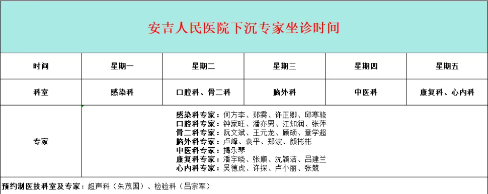 為了解決偏遠山區群眾看病困難問題,安吉縣人民醫院山川院區實現優質資源下沉,每周一至周五專家常態化坐診。專家分別來自安吉縣人民醫院的感染科、口腔科、骨二科、腦外科、中醫科以及康復科和心內科,做到讓轄區群眾真正實現在家門口享受縣級專家服務的愿望,感受到健共體建設帶來的便利。